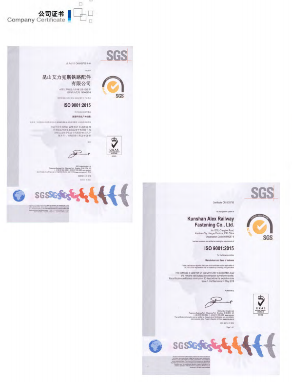 Kunshan Alex Railway Fastening Co., Ltd manufactures railway fasteners and standard components. As a leading railway fasteners manufacturers in China,with production license of Chinese railway Ministry, advanced technology, high precision inspection instruments and service, our products have been widely exported the USA, Germany, Spain, Japan, Australia, Italy, Netherlands, Belgium, Poland, the UK, India, and South Africa etc.